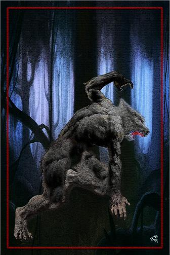 The woodsman’s flesh rippled with animated muscle and the reshaping of bone. He cried out in pain as the flesh tore and reknitted itself, hair sprouting across his bare flesh. His face convulsed and elongated forming a snout and maw of dangerous fangs. He howled with glee at the moon overhead and the aged she-wolf joined him before the two galloped off into the night to join the creatures of the night in celebration.
